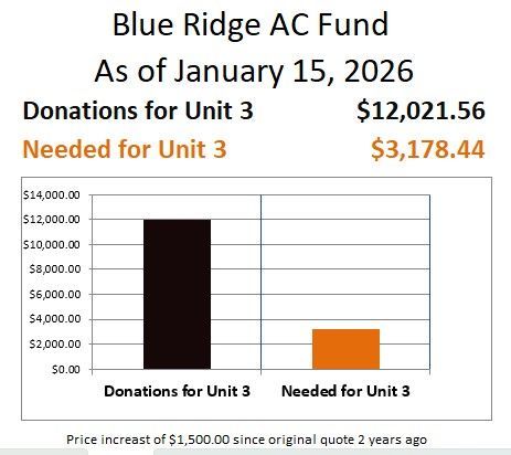 We thank those who continue to give to our Air Conditioning/Heating System replacement fund. We pray the current Fellowship Hall unit lasts for a while, but we need to be ready to replace it immediately when it goes out. We thank God for the many who have given to this fund. We are so grateful for your gifts that allowed for the replacement of the Office systems and the Children's Wing areas of the church.