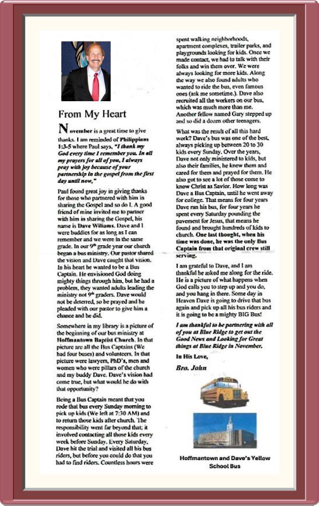 Reverend Carney writes a heartwarming and inspiring column each month.